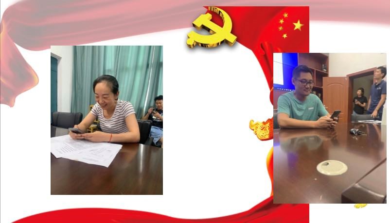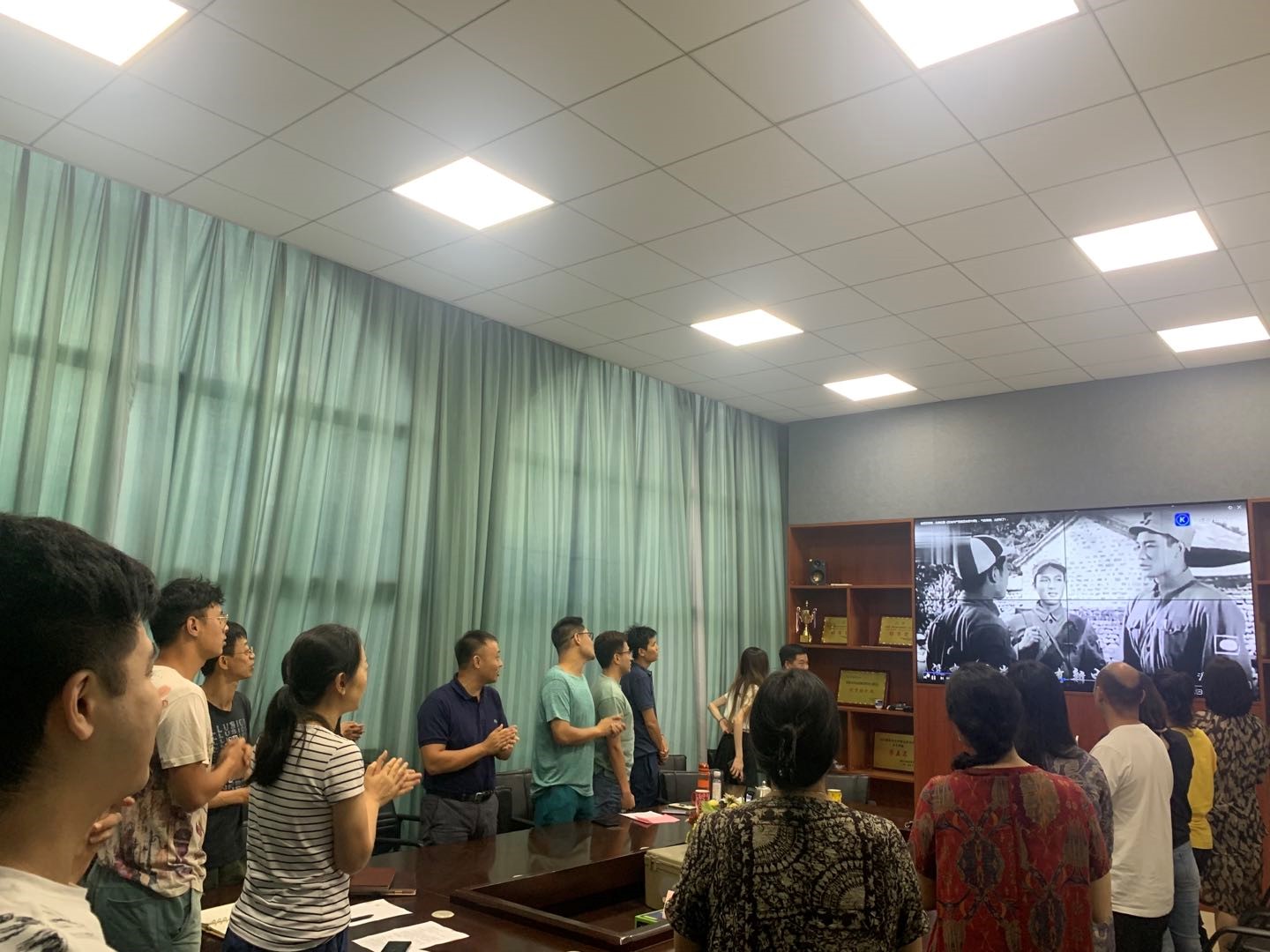 首先进行的活动是唱一首歌给党听,体育部全体26名教师跟着大屏幕上播放的《没有共产党、就没有新中国》的歌曲,集体齐声高唱,随着感人的画面和激昂的旋律,全体老师自发的跟着旋律和节奏拍起手来,每个人心中的爱国爱党情节马上被激发的淋漓尽致,在歌曲最后时刻,老师们眼神坚定,握拳振臂,整个气氛进入高潮,无穷的爱国主义情怀涌上心头。