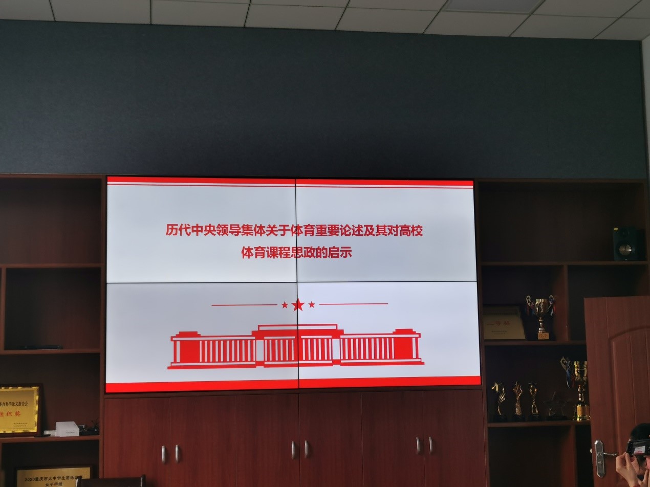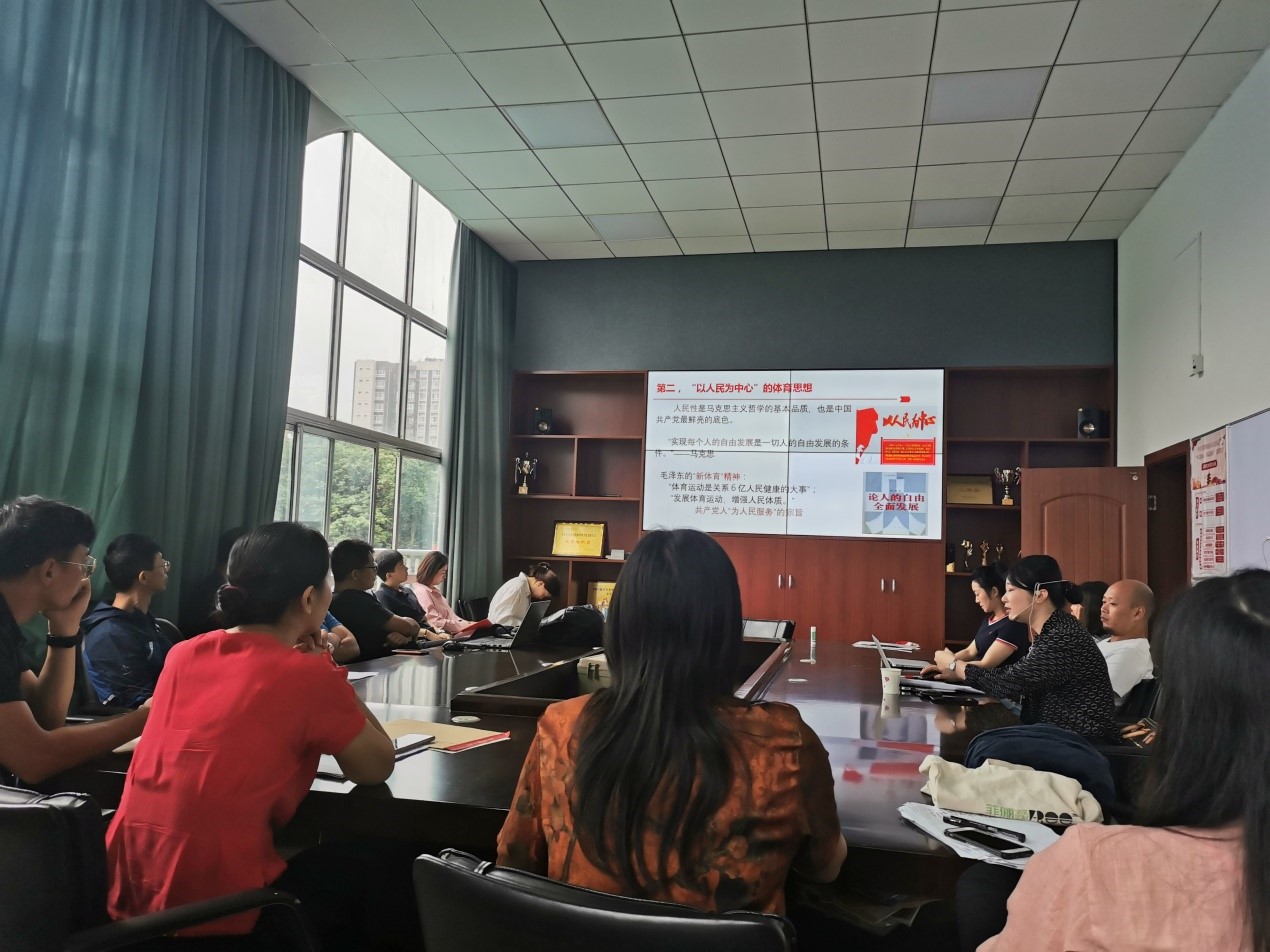 最后,张蕴教授结合历代中央领导集体的体育思想和重要论述,引导体育部老师们在平时的教学工作中推进课程思政建设、通过体育教育着重培养大学生的爱国精神;强化大学生的规则意识与法治观念;强化大学生的协作意识与集体主义精神;培养大学生的进取精神与竞争意识;提升大学生审美品味、完善人格;培养学生”知行合一“的品质。