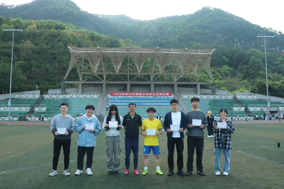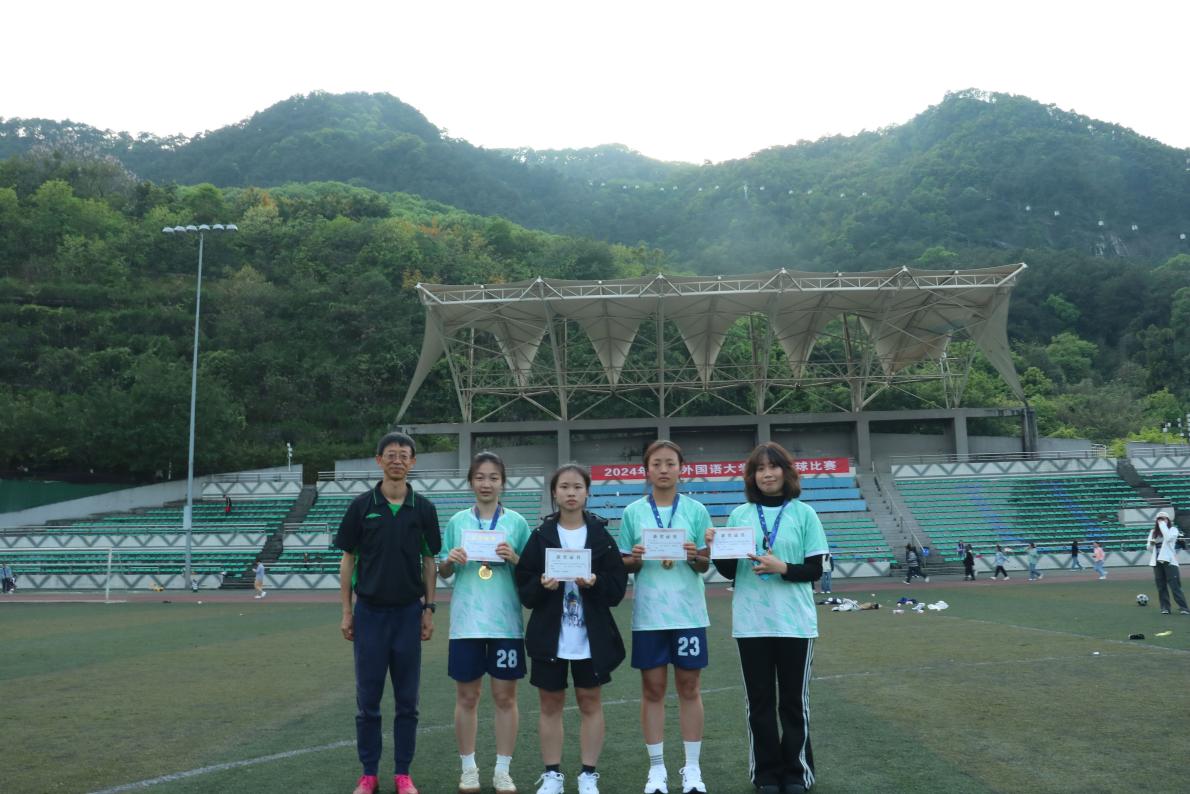 体育部季节老师分别给男女足球比赛个人获奖者颁发奖状,男子比赛获得最佳守门员的是国关翻译联队的杨证淇、最佳射手是法语学院代表队的黄昱霖、最佳球员是国关翻译联队的刘子璇;女子比赛获得最佳守门员的是工管俄语联队的余思诺,最佳射手的是英语法语联队的夏花花和肖苏,最佳球员的是英语法语联队的陈美玲。鞠泓毅、王道宇、陈瑞洋、谢文鑫、刘畅、胡欢、宋复德荣获本届比赛的优秀裁判员。