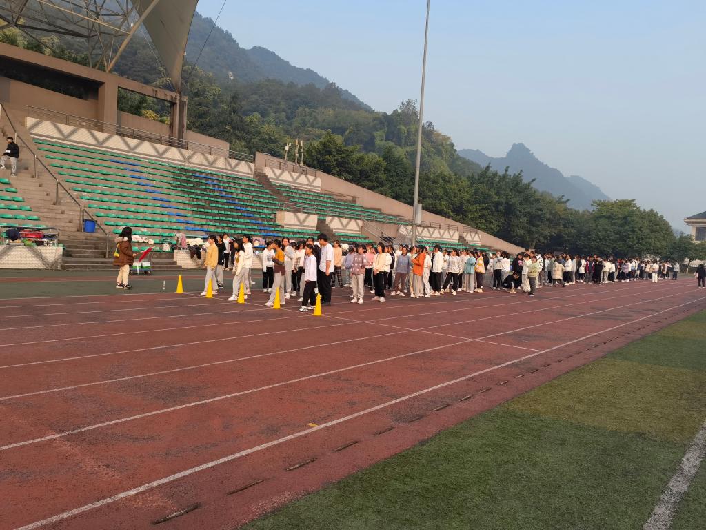 2021年12月5日上午,我校首届“大学生体质健康比赛”在东区操场隆重举行,2021级大一新生1100多人,30个教改班级为单位参加了本次测试比赛。该比赛由校体育部负责组织和开展。整个比赛准备充分,计划周密,组织得力。参与比赛测试工作的裁判员由体育部老师及非参赛学生志愿者担任,在整个比赛过程中严格公正,认真执裁。参加比赛的学生,在各班班长带领下,听从各部门裁判员的指挥与安排,井然有序地完成了本次测试比赛。据悉,本次测试比赛中,健康、形态机能按照《全国学生体质健康监测工作手册》中的有关要求进行;体能测试按照《全国大中小学生体质健康评分标准》(试行)进行。测试项目分别为:(1)形态机能项目:身高体重指数、肺活量(随堂测试)(2)身体素质项目:引体向上(男)\仰卧起坐(女)、立定跳远、50米跑、1000米跑(男)/800米跑(女)、坐位体前屈。本届比赛采用全信息化数据采集,比赛时学生需携带一卡通、身份证。