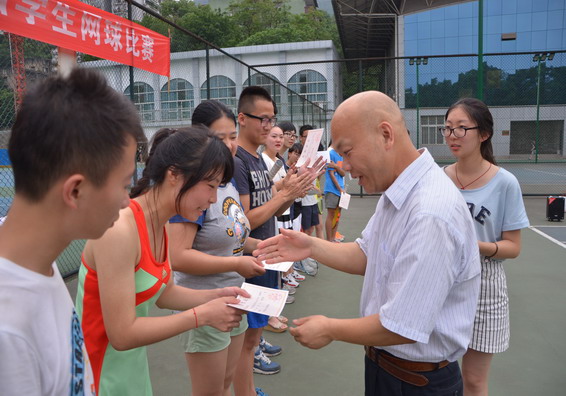 最后,我校党委副书记、纪委书记聂志强老师为获得各项目的前六名的同学颁奖并合影留恋。聂书记肯定了同学们目前的网球水平,并寄语同学们好好学习的同时坚持一项喜欢的运动。
