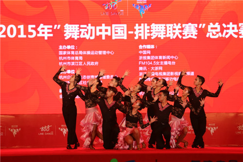 10月22日至25日,由国家体育总局体操运动管理中心、杭州市体育局与滨江区人民政府主办、全国排舞运动推广中心承办的2015年“舞动中国”全国排舞总决赛在杭州举行。来自全国41个市的108支队伍、4000多名运动员参加了此次比赛。比赛按参赛人数分为大集体(12人以上)和小集体(6~12人)两类,共设有幼儿、小学、中学、大学、青年、中年、常青7个组别,设置了集体规定曲目、集体串烧曲目、单人项目、双人项目4个项目,各项目按组别分设一、二、三等奖,并按4个项目总分评选出7个组别大集体和小集体两类团体奖,颁发大、小集体团体总分一等奖、二等奖、三等奖。