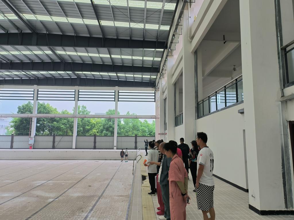 研读原著结束之后,体育部直属党支部全体党员来到山上建虎游泳池进行实地调研、考察,此次实践活动由张勇同志对游泳池的定位、功能、建筑结构等进行引领参观,全体党员参观结束后,纷纷对游泳教学、游泳池的使用、游泳池周边场地使用等发表看法和提议。
