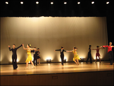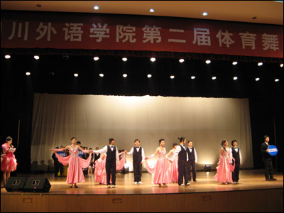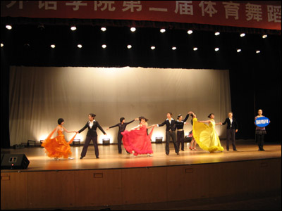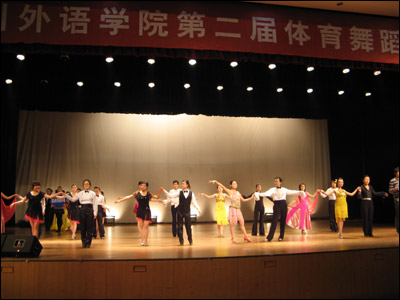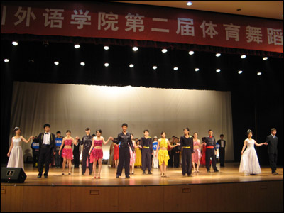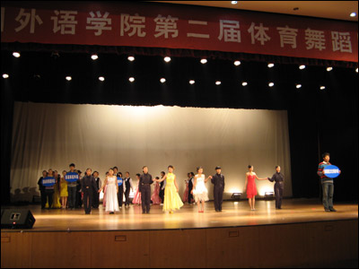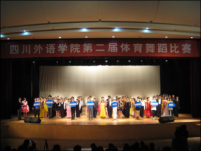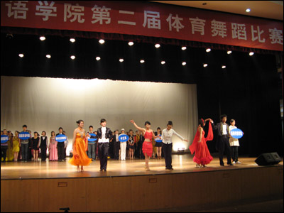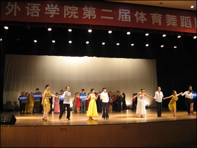 2008年12月25日,我校第二届体育舞蹈比赛在大礼堂顺利进行,来自8个教学单位的70对选手,参加了拉丁舞的“恰恰恰”和摩登舞的“华尔兹”两个舞种的比赛。经过预、复、决三轮比赛的激烈角逐,最终结果如下: