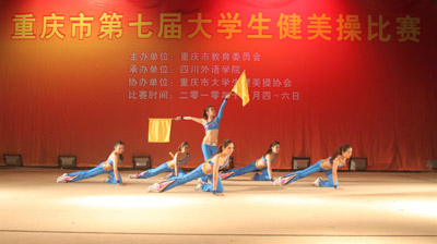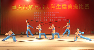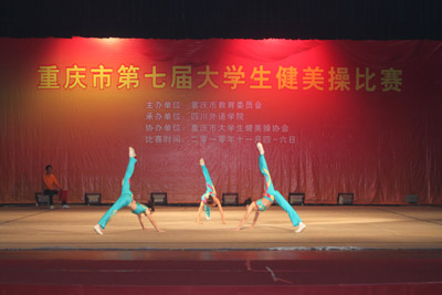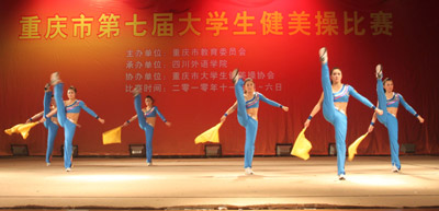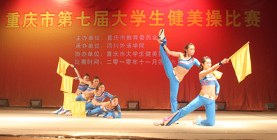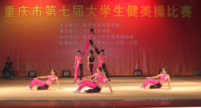 由市教委主办的重庆市第七届大学生健美操比赛于11月4日至6日在我校大礼堂举行,共有西南大学等16所市内高校派队参加了普通大学生组和体育专业组各项目的比赛。