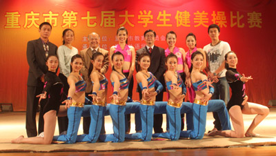 健美操队是我校重点运动队,曾在重庆市第一至六届大学生健美操比赛中囊括了普通大学生组的全部单项冠军和团体第一名。本届比赛我校派出郭倩等11名女生组成的健美操队参加了普通大学生组的第三套大众锻炼标准四级和六级规定动作、健身轻器械自编动作等三个项目的角逐。