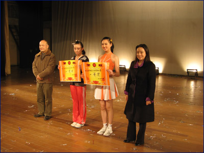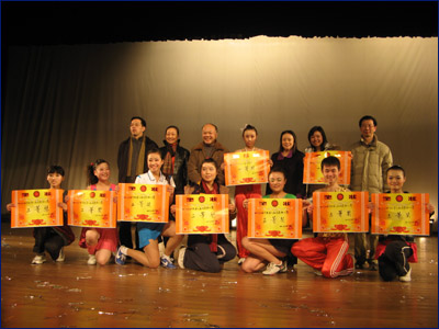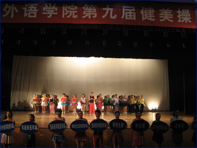 我校第九届健美操(啦啦操)比赛于12月15日晚在大礼堂成功举行,共有14支代表队参加了本次比赛。经过激烈的角逐,国际文化交流学院低年级等九支代表队分获各等级名次。外交部国际司陈传东处长,重庆市健美操协会副主席杨玉茹,我校党委副书记雷莹、副院长聂志强、院办主任林克勤、党委宣传部副部长陈新等嘉宾分别为各获奖队颁发奖状。