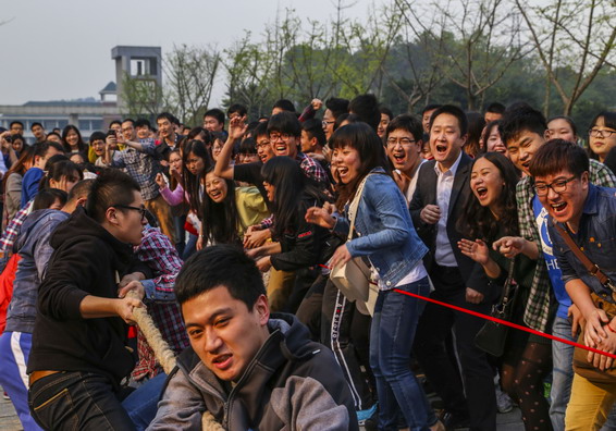 经过前后共五天的艰苦比拼,2014年春季运动会拔河比赛于4月3日下午圆满结束。 本次拔河比赛共计有15个院系23支队伍参加比赛。经过两天的淘汰赛,决出了本次拔河比赛的八强队伍,他们分别是国际关系学院高年级、中文系低年级、国际关系学院2012级、法语系、商务英语学院、新闻传播学院低年级、英语学院2012级和研究生院。八强队伍再分别经历三场排位赛定下最终名次,最后胜出的第一名为研究生院。  研究生院队员合照  英语学院2012级队员合照  新闻传播学院低年级队员合照  商务英语学院队员合照  国际关系学院2012级队员合照  法语系队员合照     第一名:研究生院 第二名:英语学院2012级 第三名:新闻传播学院低年级 第四名:商务英语学院 第五名:法语系 第六名:国际关系学院2012级 第七名:中文系低年级 第八名:国际关系学院高年级 带结果赛程:tyb/edit/uploadfile/20144/2014-4-4-7-24-30.xls |